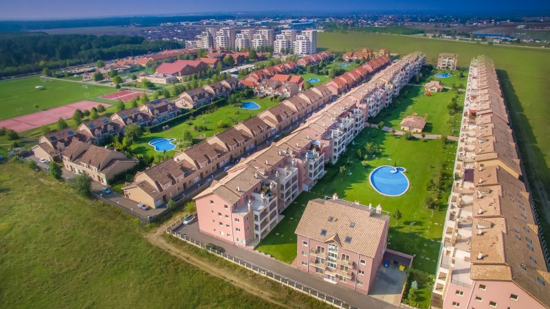 In interiorul ansamblului rezidential fiind amenajata o gradina de 12.000 mp unde ai oricand la dispozitie 2 piscine cu jacuzzi, o zona de spa cu sauna, un teren de minigolf, o sala de fitness si un club pentru copii.