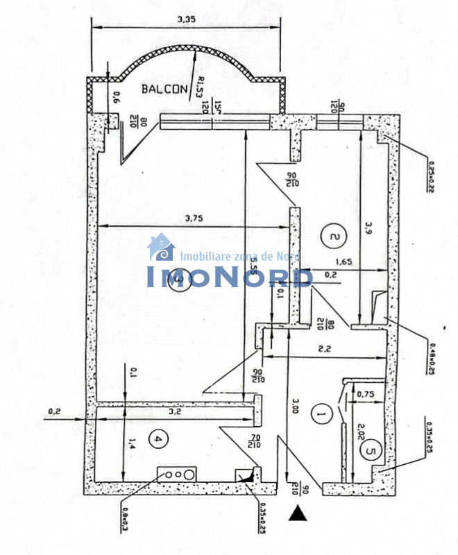 Compartimentare: hol, cameră, baie, bucătărie, balcon