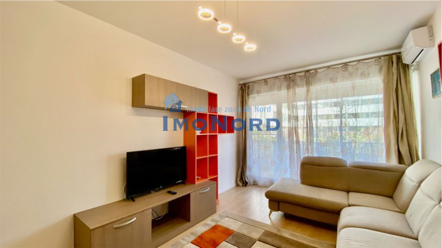 Va oferim spre inchiriere un apartament de 2 camere, decomandat, utilat, mobilat modern, locuinta dispune de centrala proprie, incalzire in pardoseala, A/C, masina de spalat vase, masina de spalat, TV, loc de parcare. Situat in zona de Nord a capitalei pe soseaua Chitilei in complexul Atria Urban Resort cu iesire rapida catre linia de centura cat si catre centrul orasului. Situat la parterul unui imobil de 4 etaje apartamentul beneficiaza de curte proprie cu o suprafata de 24 mp, spati comune, piscina, loc de joaca.