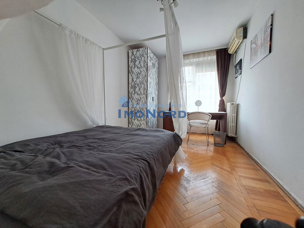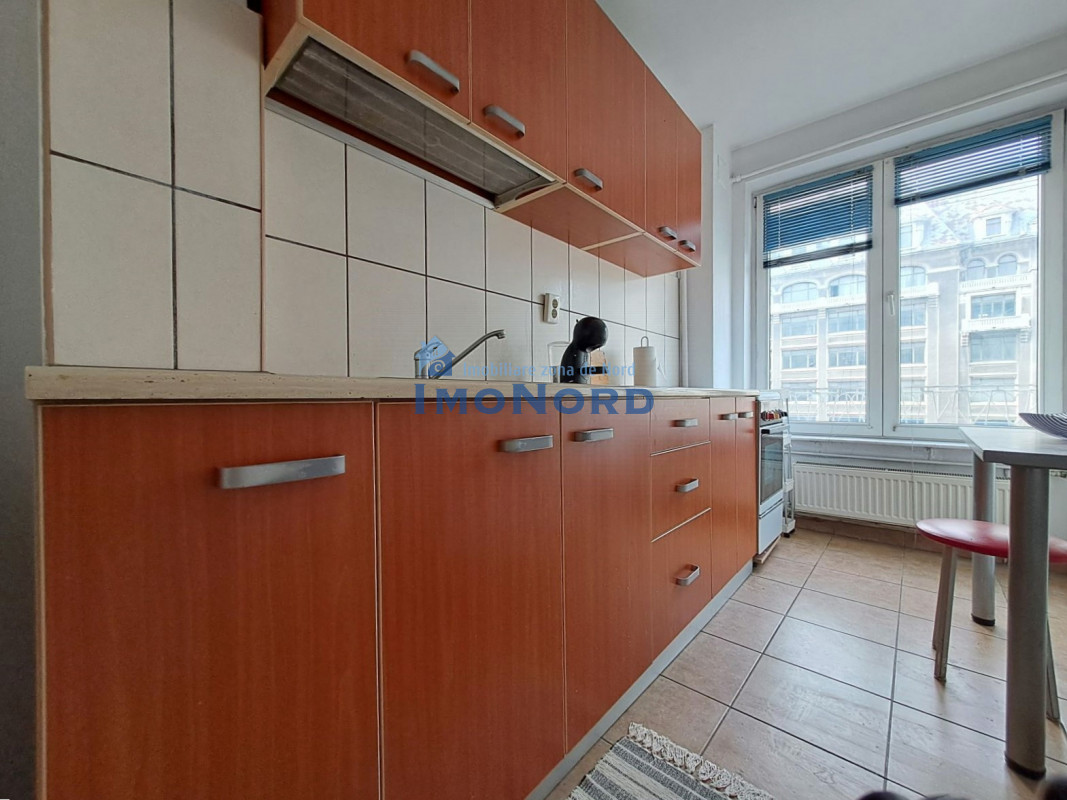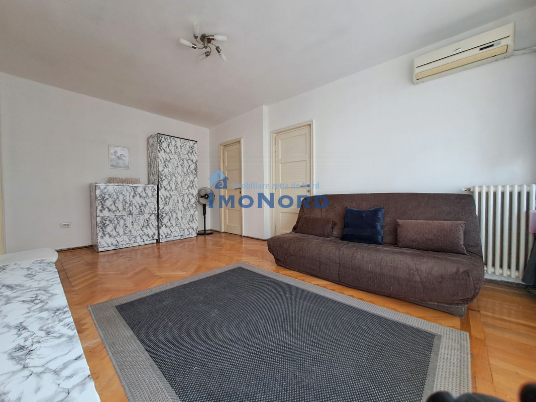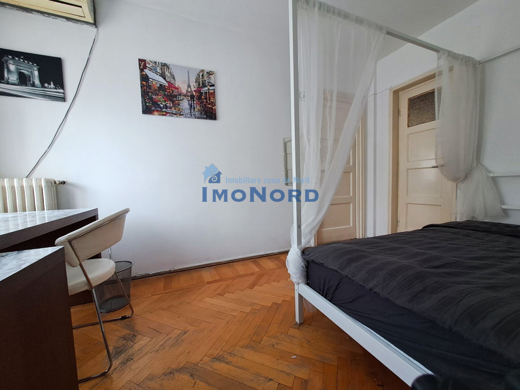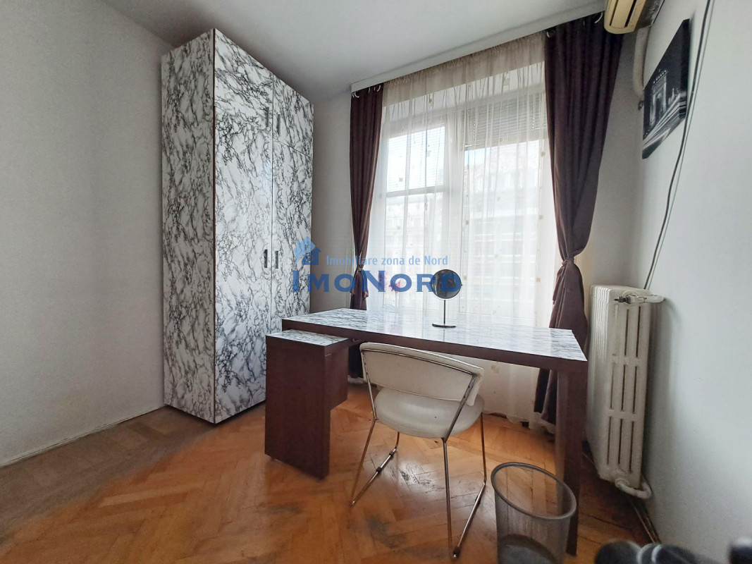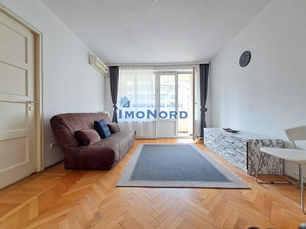 Apartamentul se afla pe bulevardul Magheru - Piata Romana, este situat la etaj inferior, semidecomandat, se compune din hol intrare, bucatarie, camera de zi, hol intermediar, dormitor, baie, spatii depozitare si un balcon amplu orientat catre bulevard.
