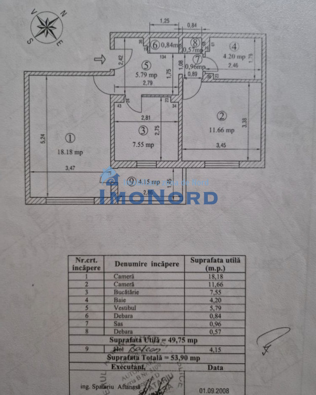 Apartament de 2 camere, decomandat, cu suprafață utilă de 50 mp + balcon 4 mp.