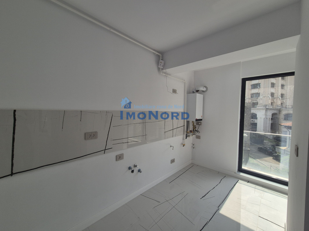 Bucătărie semideschisă, modernă, cu posibilitate de închidere pentru mai multă intimidate si access in balcon;
