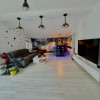 Livingul avand o suprafata de 30mp ,pe langa masuta de cafea , este decorat cu un bar(cu 6scaune) din Mdf vopsit negru lucios cu geam gros fumuriu deasupra avand un design deosebit!