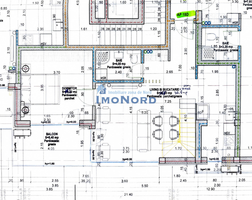 - Se va monta un singur aparat de AC in zona de living, iar pentru celelalte incaperi fiecare proprietar isi va achizitiona propriul model de AC care va fi montat insa pe instalatia deja prevazuta de dezvoltator,