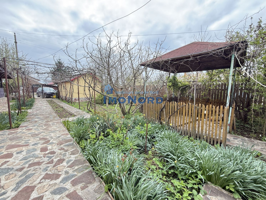 Garaj cu acces direct din strada. Curtea casei este amenajata: un foisor cu gratar, o zona de relaxare cu balansoar, pomi fructiferi, vita de vie, flori, capsuni, smochin, liliac si multe alte plante si flori.