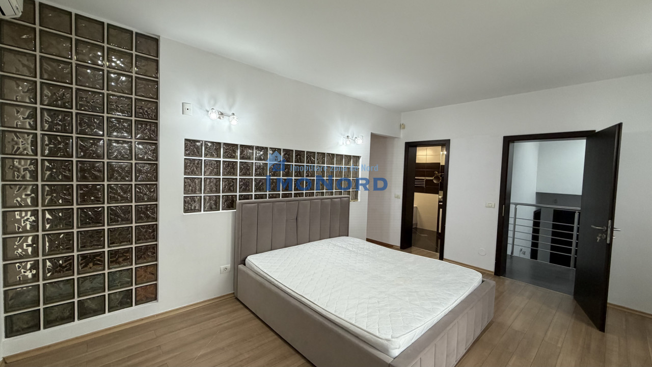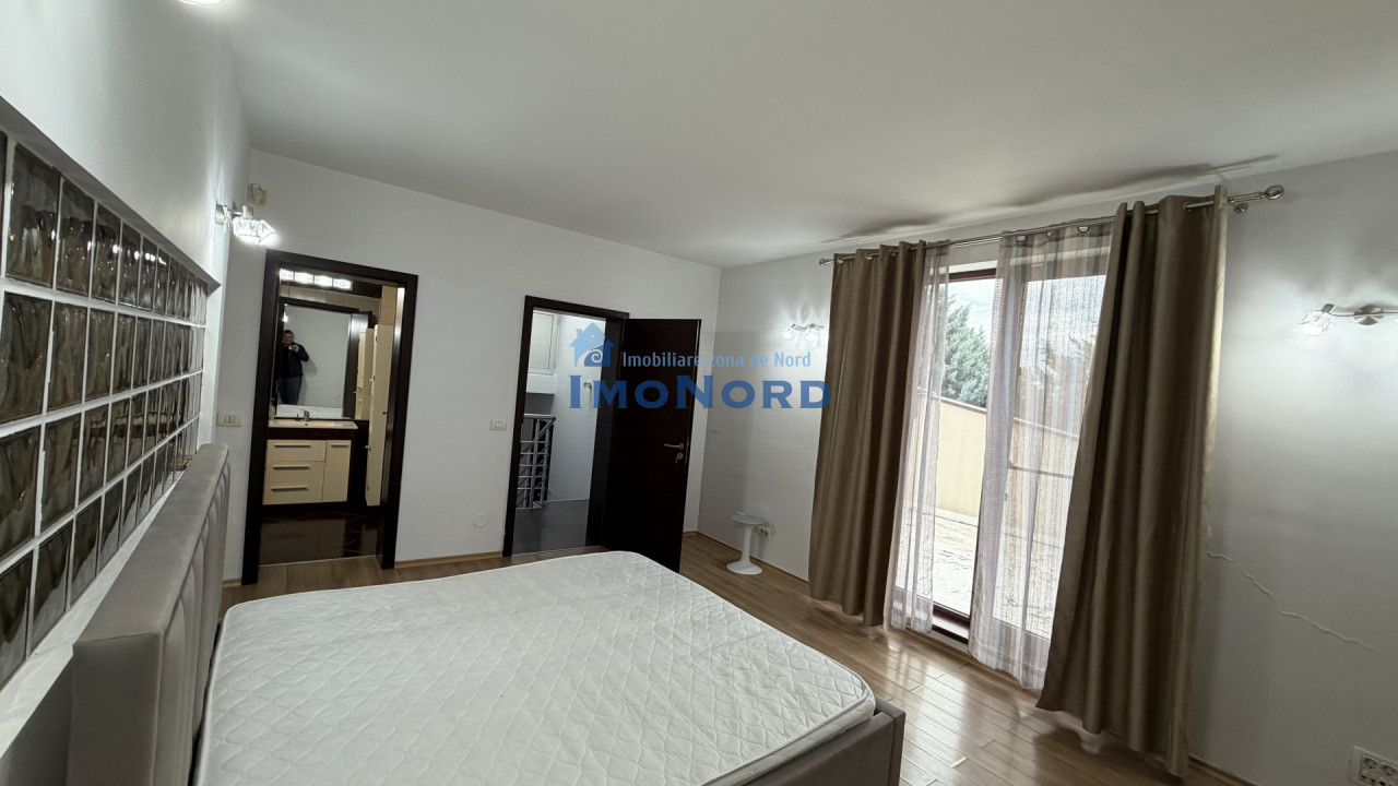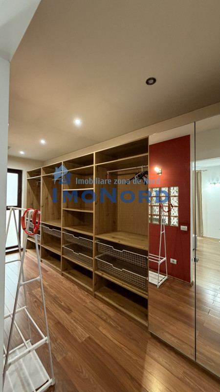 La un nivel intermediar: spațiu suplimentar de depozitare, dormitor matrimonial cu terasă proprie de 15 mp, dressing generos și baie privată
