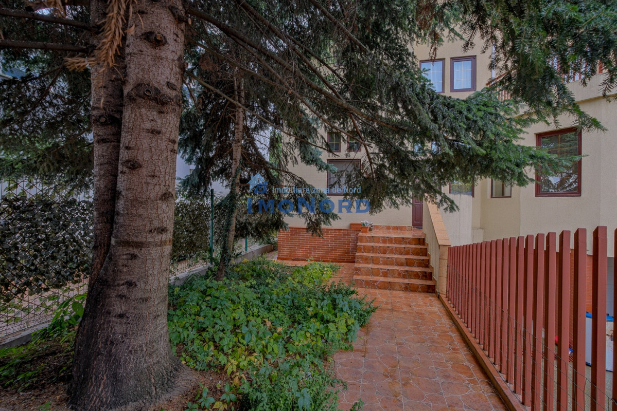Curtea este frumos amenajată, cu vegetatie matură, foișor pentru relaxare și piscină pentru zilele calde de vară. Accesul auto este foarte generos: în garajul de la demisol pot intra 3 mașini, iar pe rampă se mai pot parca lejer încă 2 autoturisme.