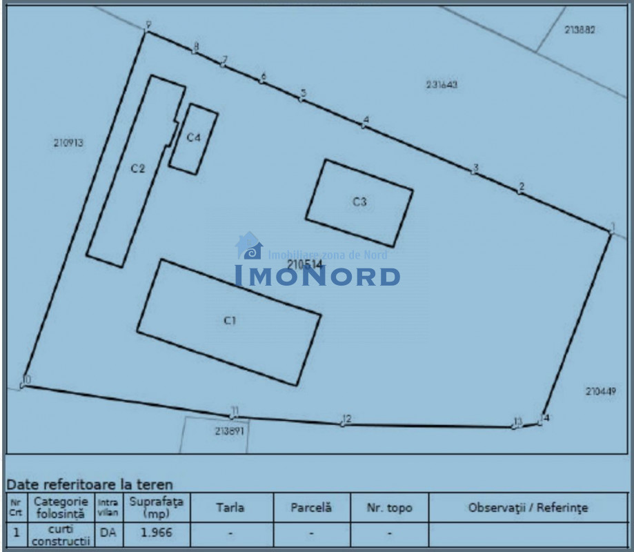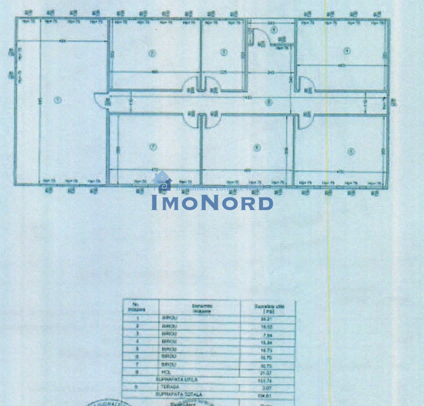 Clădire birouri – 166 mp: situată pe parter, compusă din 6 camere, spațiu tehnic și grup sanitar.