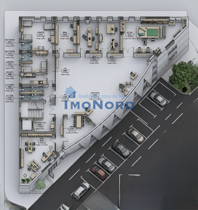 Compartimentare existentă: mix de birouri individuale și open-space